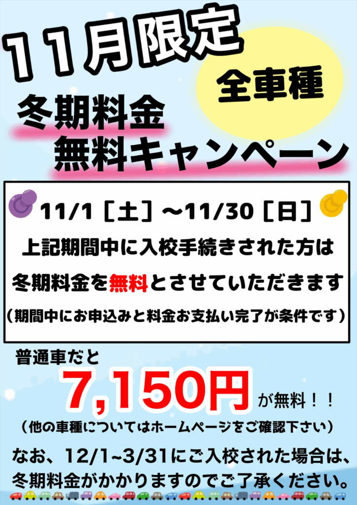 【11月限定】冬期料金無料キャンペーンのお知らせ